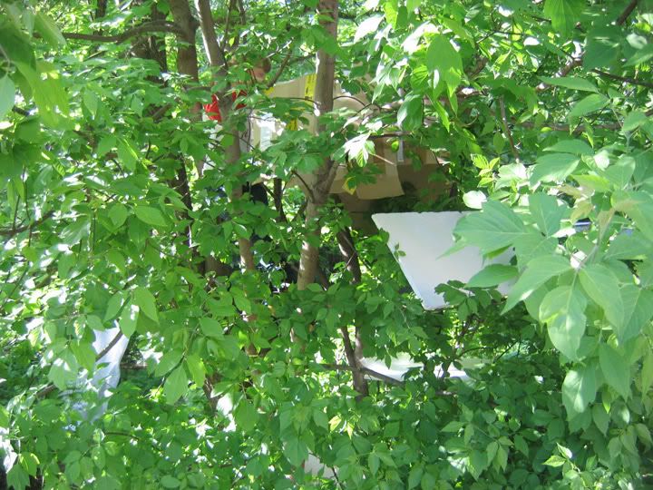 Главное (единственное) вчерашнее событие — пощёлкал мальчика, строившего на дереве из картонных коробок домик. С земли новыми коробками помогала, кажется, девочка.