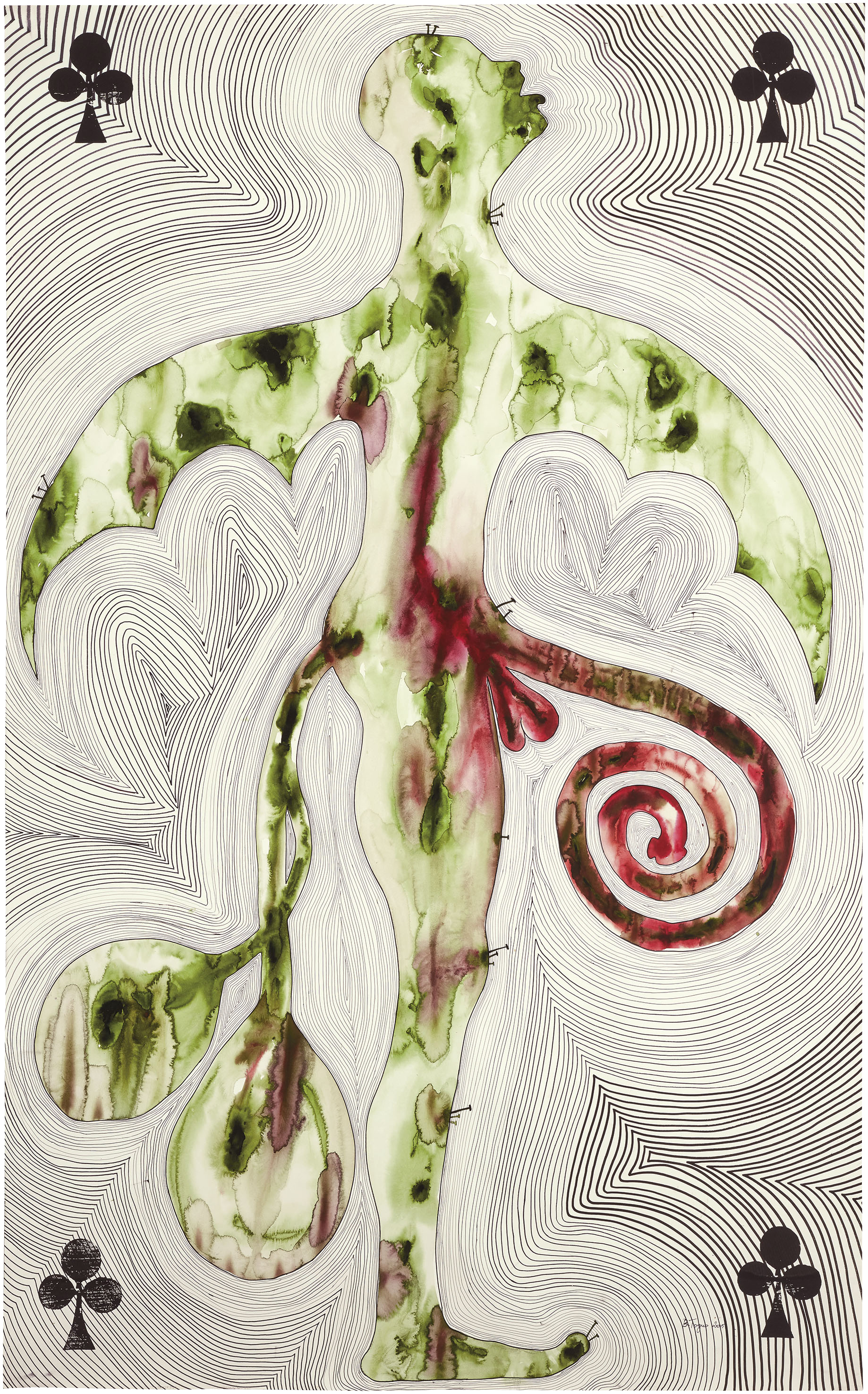 watercolour and ink on paper, 193 × 119.5 cm
